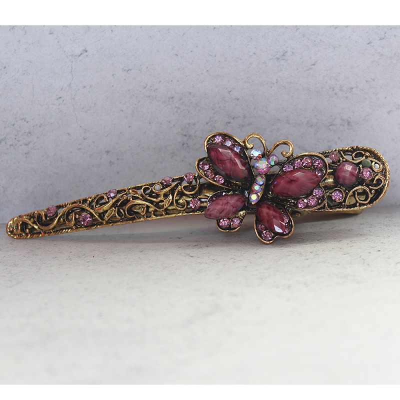 Vintage Style Metal Beak Clip With Mauve Butterfly