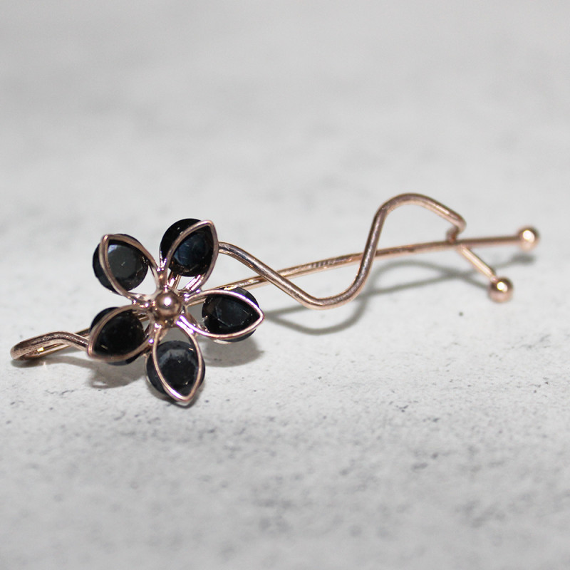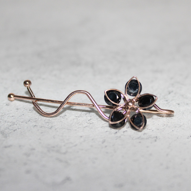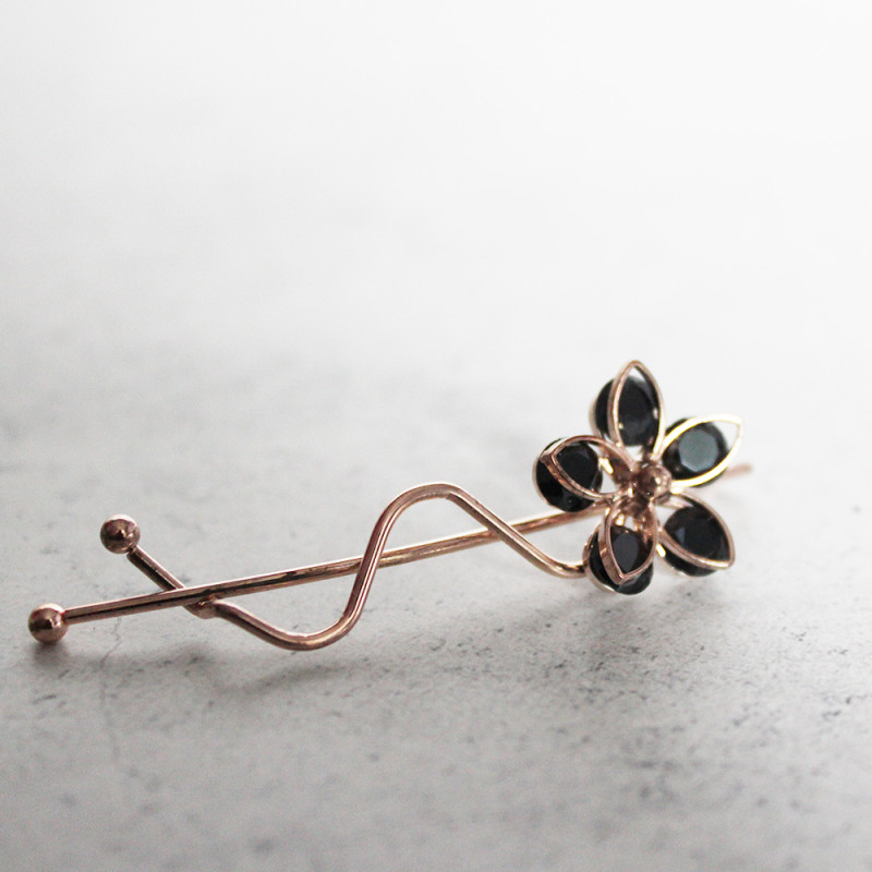 Add a touch of elegance to your hairstyle with this exquisite gold-toned hair clip, featuring a graceful flower motif adorned with black Cubic Zirconia crystals. Ideal for both everyday wear and special occasions.