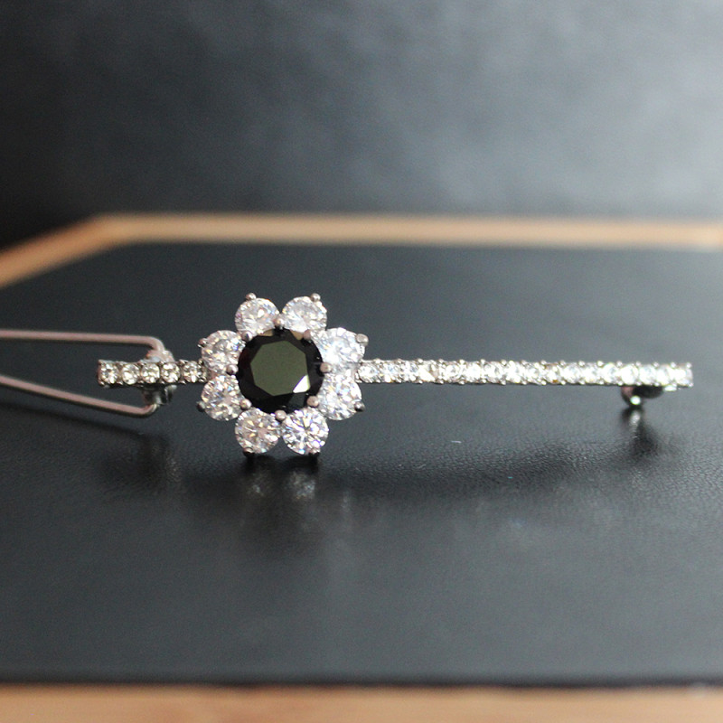 - Design: Flower motif with jet stone centre