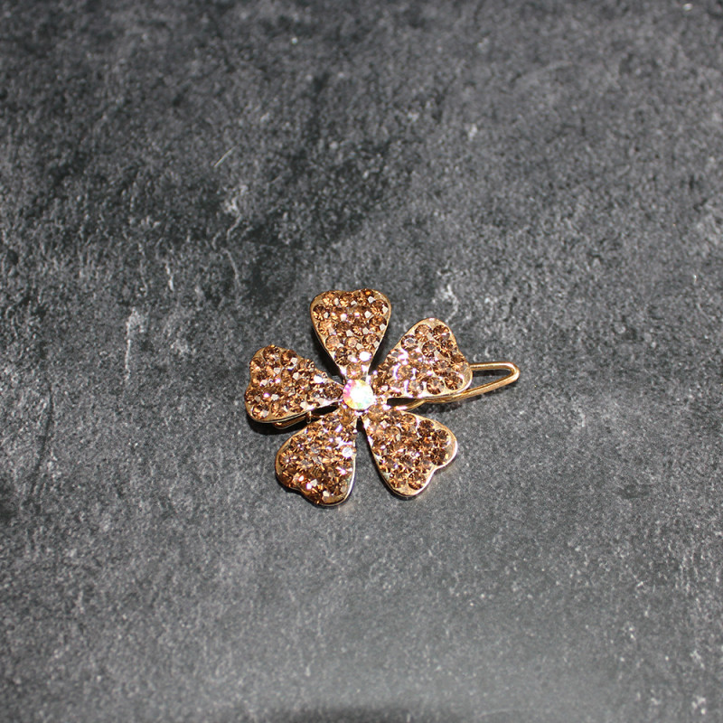 A pretty, sparkling hair clip in a flower shape, studded with topazcoloured glass crystals.
