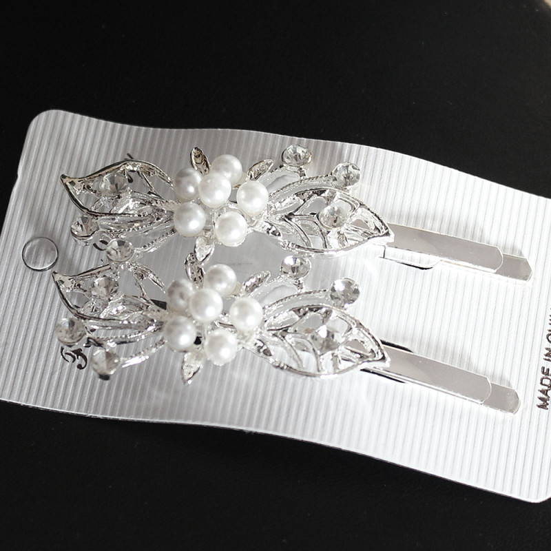 Two Diamante and Pearl Hair Slides In Silver Finish