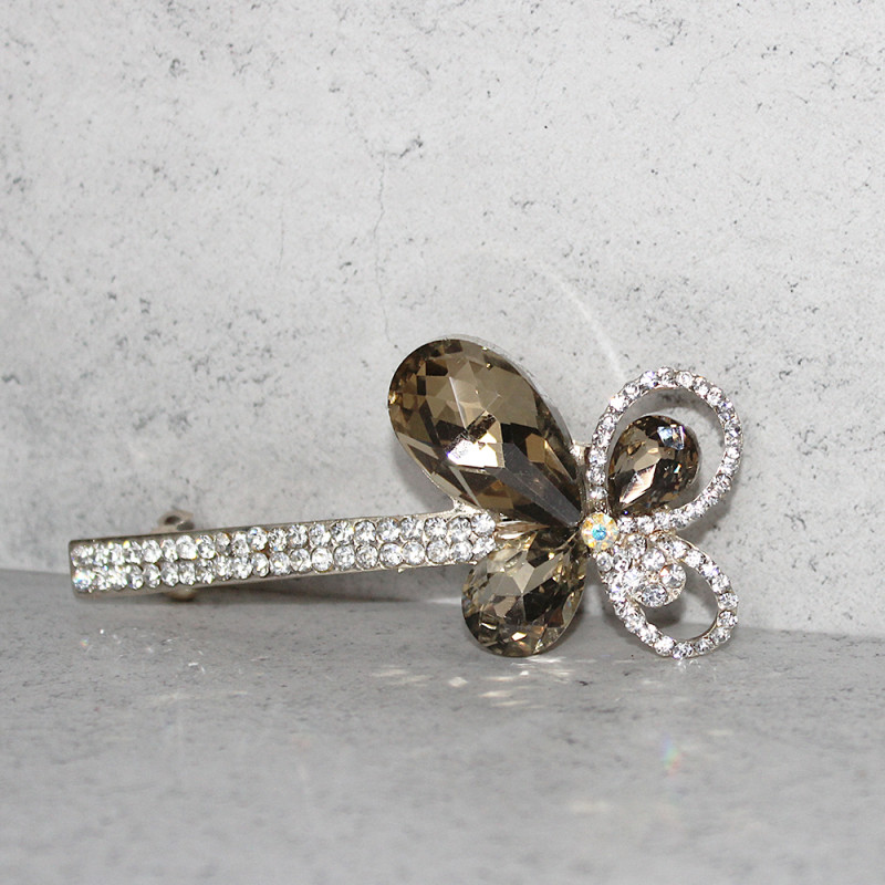 Add a touch of sparkle to your hairstyle with this elegant hair clip, featuring clear crystals and larger topaz-coloured stones. Perfect for both everyday wear and special occasions.