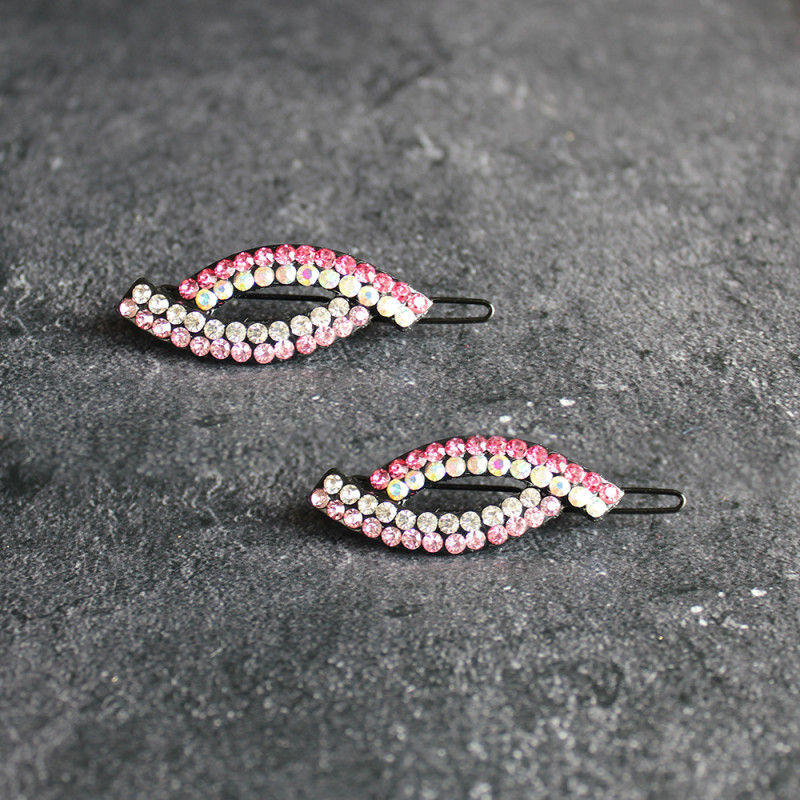 Two very pretty hairclips featuring sparkling crystals in shades of pink, and clear.