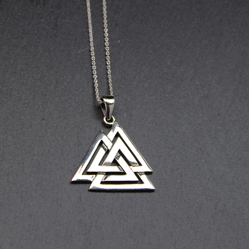 Celebrate the timeless beauty of Norse mythology with this elegant sterling silver Valknut pendant necklace. The intricate design, also known as Odin's knot, symbolises history, craftsmanship, and cultural heritage, making it a meaningful accessory for any occasion.
