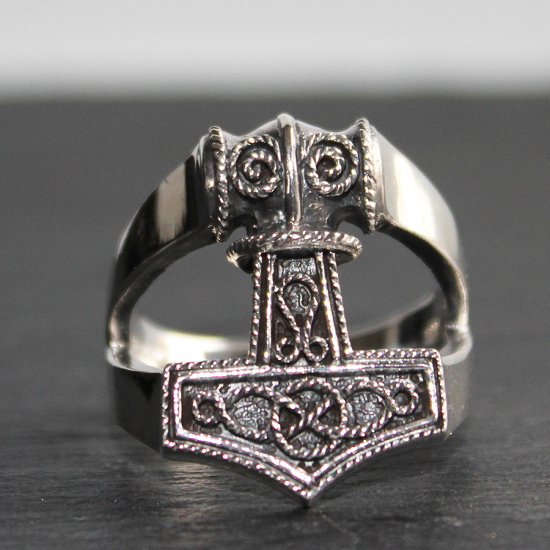 Celebrate the power and legacy of Thor with this sterling silver ring, featuring the iconic design of Thor's Hammer. The intricate craftsmanship and bold design make it a striking accessory for fans of Norse mythology and unique jewellery.